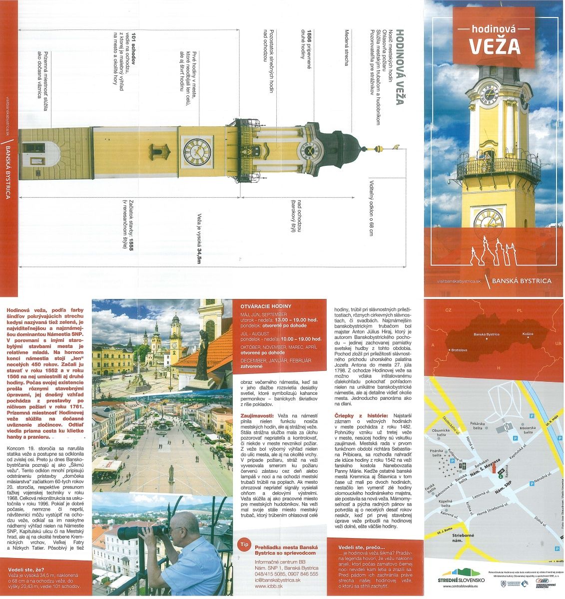 Hodinová veža zo 16. storočia je národnou kultúrnou pamiatkou a je v prevádzke Informačného centra Banská Bystrica. Otvorená je v prípade priaznivého počasia v mesiacoch máj – september. Na vežu vedie 101 drevených schodov, z ochodze vo výške 20,5 m je nádherný výhľad na priľahlé historické centrum a okolité kopce Kremnických a Starohorských vrchov, Veľkej Fatry, Nízkych Tatier a Poľany.